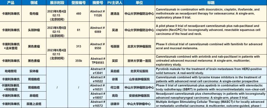 此外,在头颈肿瘤、黑色素瘤、骨肉瘤、鼻咽癌、肾细胞癌、尿路上皮癌等多个领域,卡瑞利珠单抗、吡咯替尼等产品相关研究一共入选了4项壁报展示和5项线上发表,彰显了G22恒峰医药强大的自主研发综合实力。