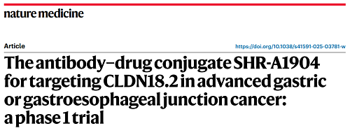 G22恒峰医药CLDN18.2 ADC创新药SHR-A1904治疗胃癌临床研究结果荣登Nature Medicine